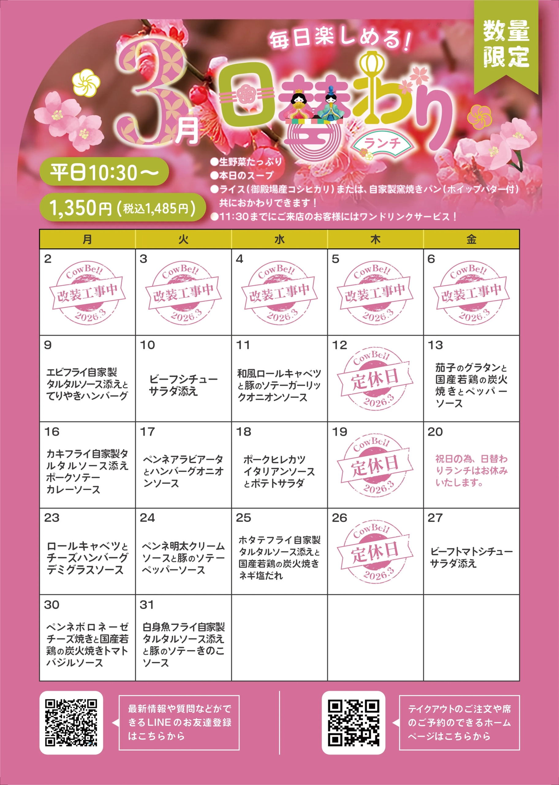 平日数量限定 日替わりランチ